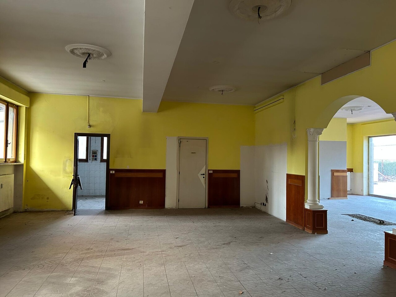 PIAZZALE AREONAUTICA LOCALE COMMERCIALE di mq. 145 composto da due sale, locale ad uso deposito e cucina, ripostiglio, antibagno e n. 3 servizi. Portico aperto di pertinenza di mq. 161.